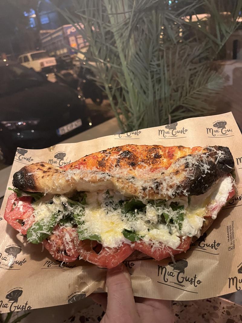 Ekşi mayalı pizza hamuru, pesto sos el yapımı burrata peyniri, yeşillik. grano padano parmesan, sızma zeytinyağı.